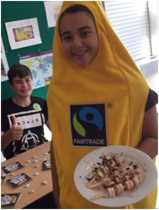 Viel  Information über den Fairen Handel, aber auch viele leckere Bananensticks, z.B. mit Früchten, Kokosstreuseln und  Schokolade gab es am Tag der offenen Tür in der MKG.
