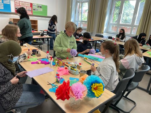 Der Profilkurs hat einige Stunden in den letzten Wochen damit verbracht, Blumen aus Krepp- und Seidenpapier für den Muttertag zu basteln. Es sind wunderschöne, kreative und kunterbunte Blumen entstanden. In der Woche vor dem Muttertag haben die Care- Schülerinnen und Schüler diese dann gegen eine Spende verkauft. Der Erlös dieser Aktion soll dieses Mal für ein Bildungsprogramm für Mädchen in Malawi gespendet werden. Das Care-Projekt „Join My Village“ fördert dort den Schulbesuch von Mädchen, um so den Teufelskreis der Kinderehen zu durchbrechen. Durch dieses Bildungsprogramm wird jungen Mädchen die Möglichkeit gegeben, hoffnungsvoll in eine sichere und selbstbestimmte Zukunft zu blicken. Wir danken allen, die mit dem Blumenkauf das Bildungsprojekt unterstützt haben!