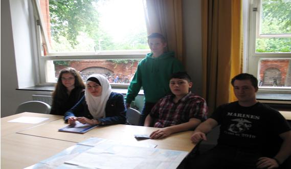 „Wie viele Jahre gehen Amerikaner zur Schule?“ „Wo wohnt Präsident Obama eigentlich?“ Wie ist das Wetter in Michigan?“ „Was fällt dir an Deutschland im Vergleich zu Amerika auf?“ Diese und viele, viele andere Fragen konnten SchülerInnen des 8. Jahrgangs am Montag, 09. September dem Studenten Jacob aus Michigan stellen. An dieser Stelle möchten wir uns herzlich bei Frau Kleinsorg, die den Kontakt hergestellt hat! Die Herausforderung für unsere SchülerInnen: Jake spricht neben seiner Muttersprache Englisch auch Spanisch und Französisch, aber kein Deutsch. Stellvertretend berichten Furkan, Khadija, Leon K. und Taleja, wie sie diese Herausforderung gemeistert haben.