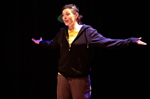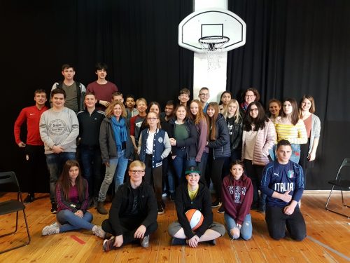Am 01.04.2019 haben wir, die Klasse 9d, mit unseren Lehrerinnen Frau Himbert-Gatzelis und Frau Georg das Casamax-Theater in Köln besucht. Anfangs hatten wir keine Ahnung, was uns in dem Theaterstück mit dem Titel „Heimat A.T“ erwartet. Im Theater saßen wir zunächst alle etwas irritiert auf im Raum vereinzelt verteilten Stühlen, die alle in die Mitte des abgedunkelten Raumes ausgerichtet waren. Plötzlich stürmte die junge Schauspielstudentin Franziska herein: „Scheiße, ich habe ein Problem“, hallte es laut durch den Raum. Franziska kommt als Azmi, der aus seinem Heimatland geflohen ist, in den Raum. Sie verkörpert aber auch andere Personen: Enno, der ein Problem mit geflüchteten Menschen hat, einen Lehrer, der sich fast nur für seine Fossiliensammlung interessiert und Frank, einen Basketballtrainer, der Azmis Mannschaft, seine „Crunchies“ trainiert.