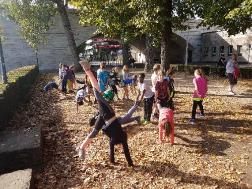 Neben den erlaufenen Kilometern lösten die Schülerinnen und Schüler als Klassen-Teams unterschiedlichste Aufgaben. Hierbei zeichneten sie sich besonders durch ihren Zusammenhalt und ihre Kreativität aus. Es entstanden dabei unter anderem neue, originelle Schulsongs und unser Marie-Kahle-Logo wurde von den Klassen in Form einer Menschenpyramide zunächst geplant und anschließend tatkräftig umgesetzt. Gekrönt durch das sonnige Sommerwetter, die tolle Stimmung und die Unterstützung der Lehrkräfte wurde dieser Tag zu einem unvergessenen Ereignis.
