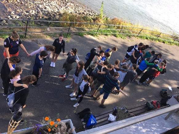 Neben den erlaufenen Kilometern lösten die Schülerinnen und Schüler als Klassen-Teams unterschiedlichste Aufgaben. Hierbei zeichneten sie sich besonders durch ihren Zusammenhalt und ihre Kreativität aus. Es entstanden dabei unter anderem neue, originelle Schulsongs und unser Marie-Kahle-Logo wurde von den Klassen in Form einer Menschenpyramide zunächst geplant und anschließend tatkräftig umgesetzt. Gekrönt durch das sonnige Sommerwetter, die tolle Stimmung und die Unterstützung der Lehrkräfte wurde dieser Tag zu einem unvergessenen Ereignis.